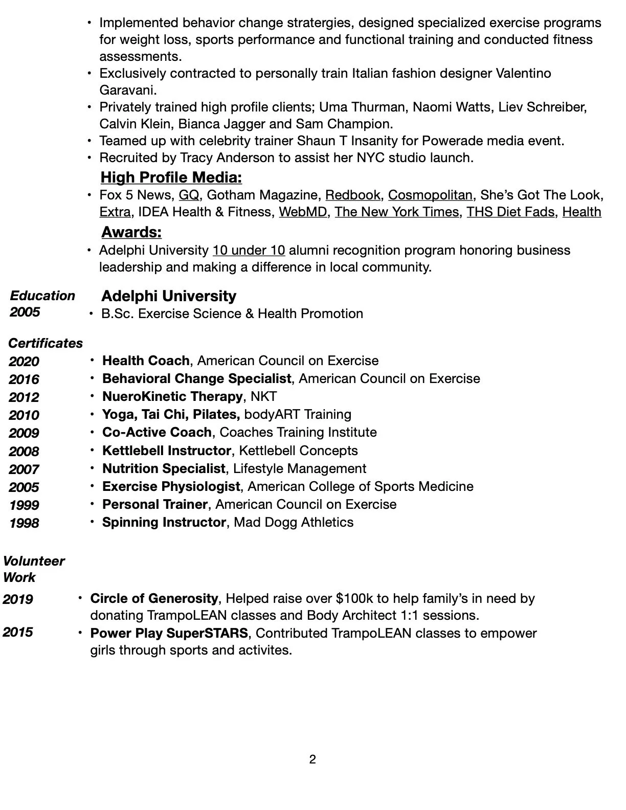 Rooted in behavior-change science and the principles of lifestyle medicine. Skills include; active listening, motivational interviewing, and client-centered goal-setting. Introducing powerful tools to help others take charge of their health. Specializing in posture, nutrition, cardiovascular programming and exercise programs for special populations.